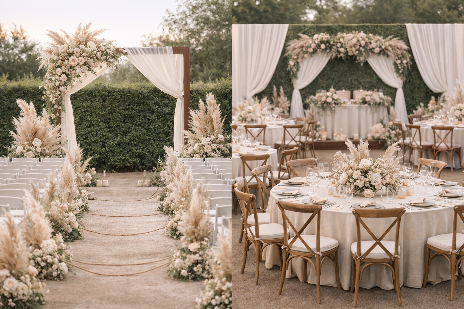 Custom event backdrops designed for weddings, birthdays, and celebrations, including floral walls, balloon installations, and elegant stage designs to create memorable celebrations.