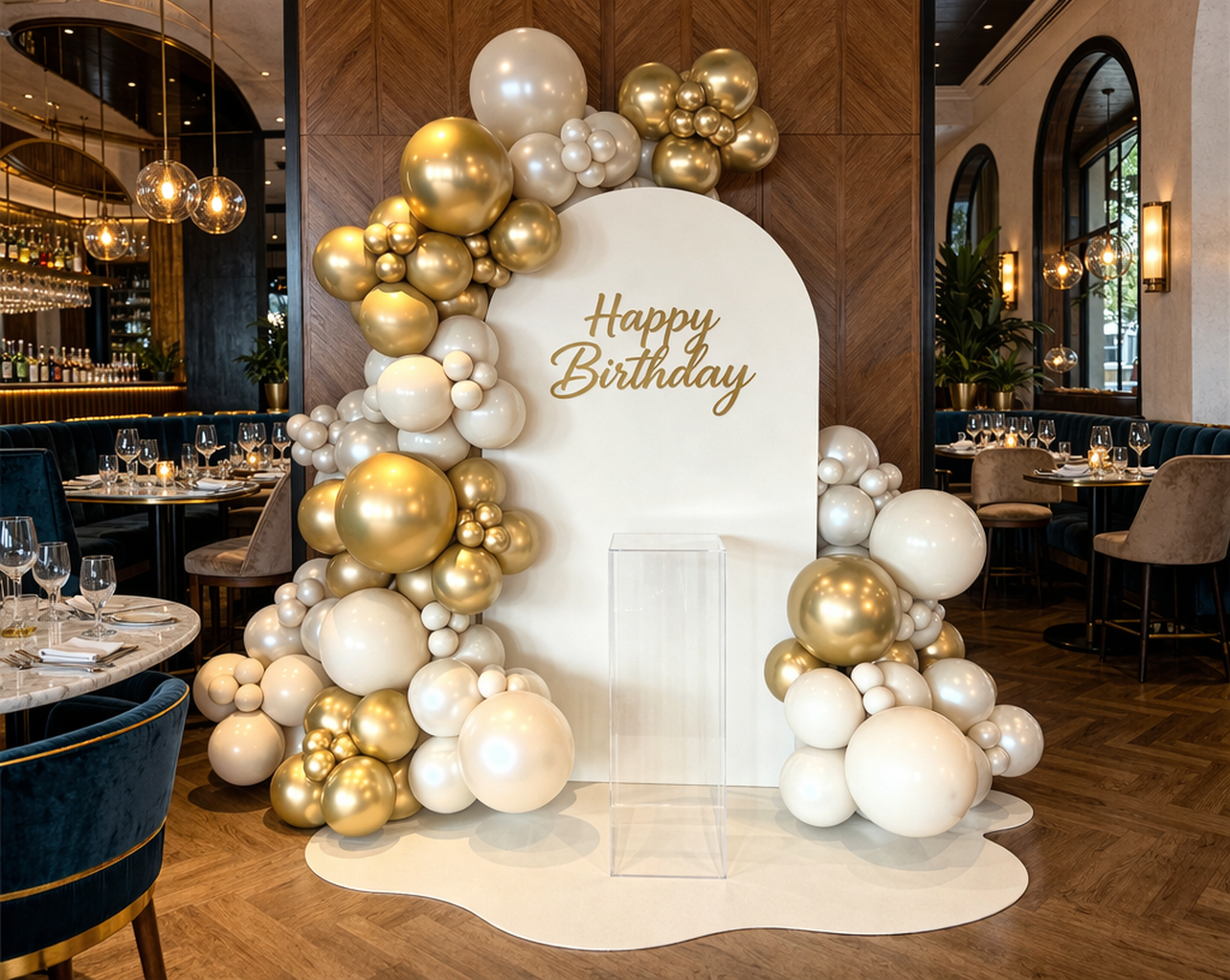 Creative birthday decor including balloon installations, themed backdrops, table styling, and custom decorations designed for memorable celebrations.